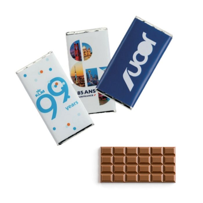 25 gr-os mini táblás BELGA csokoládé, csomagolás: alufólia + 4 színnel nyomott papírpalást (10 x 5 cm), választható ízek: 60%-os Belga Étcsokoládé, 35%-os Belga Tejcsokoládé, 60%-os Belga Narancsos Étcsokoládé, 60%-os Belga Málnás Étcsokoládé