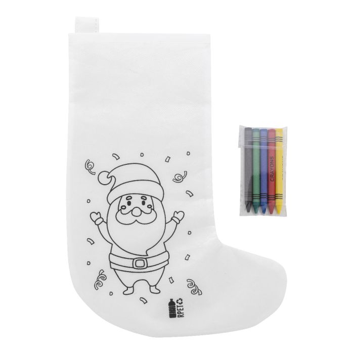 Karácsonyi színezhető zokni RPET non-woven anyagból, 5 db zsírkrétával.