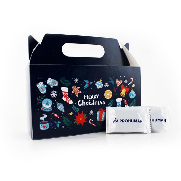 Kakaós reklámkeksz egyedi táska dobozban, karácsonyra