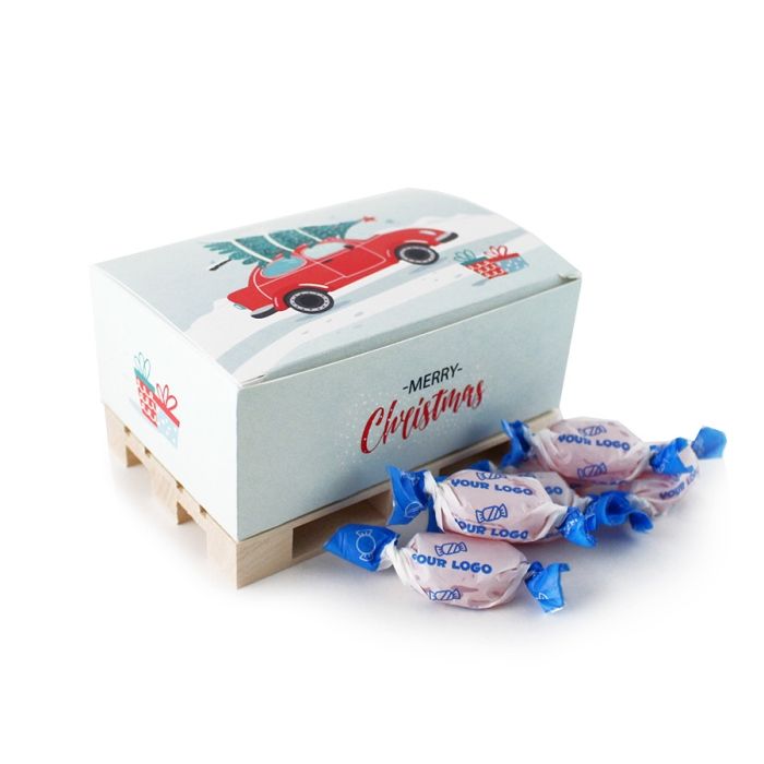 Reklámcukor mini raklapon, karácsonyra