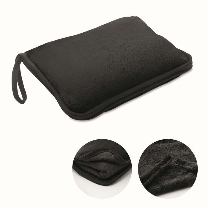 2 az 1-ben összehajtható flanel útitakaró vagy párna szett. 220 g/m². 600D RPET poliészter, gurulós bőröndre illeszkedő pánttal és fogantyúval.