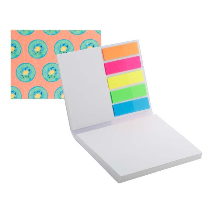 Egyediesíthető, magpapírral borított öntapadós jegyzettömb. Tartalmaz újrahasznosított papír öntapadós jegyzetlapokat 2 méretben (50 lap 100×75 mm és 25 lap 50×75 mm) és 100 muanyag fólia oldaljelölőt 5 különböző színben (44×12 mm). Az ár tartalmazza a külső borító full-colour nyomtatását. Minimális rendelési mennyiség: 100 db. Válogatott vadvirágmagokkal.