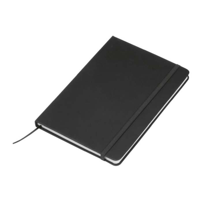 A5 méretű jegyzetfüzet újrahasznosított PU-borítóval és 160 vonalas oldallal, mely újrahasznosított papírból készült.