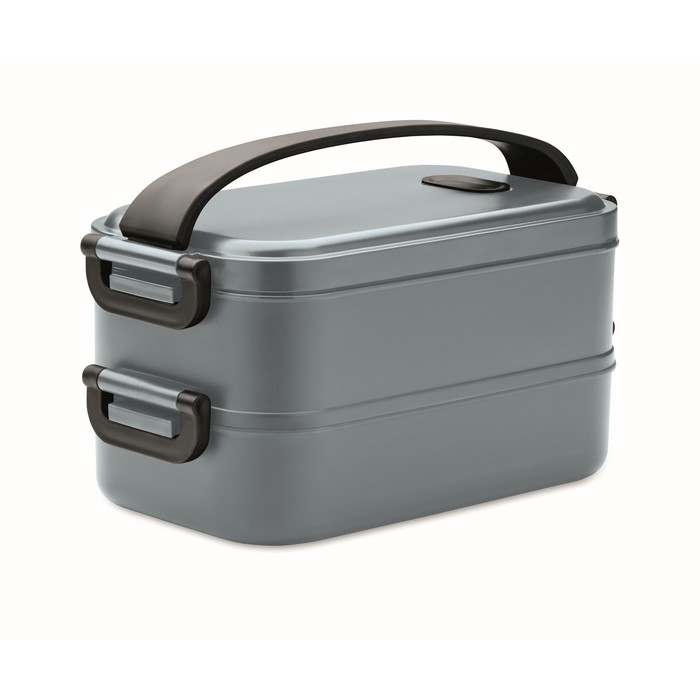 PP emeletes uzsonnásdoboz oldalsó zárócsatokkal, kivehető elválasztó résszel és légmentesen záródó fedéllel. Űrtartalom: 800 ml (2x).