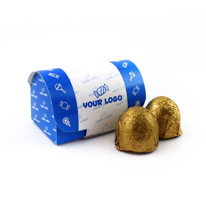2 db alkoholos töltelékű marcipán ízű golyó (25g) egyedi grafikás papírdobozban (83x52x51 mm).