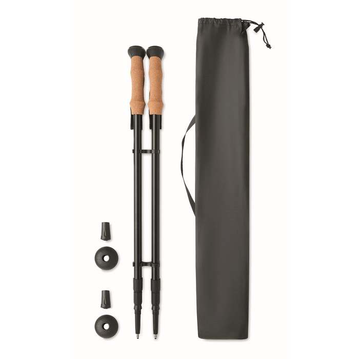 Teljesen állítható nordic walking botok alumíniumból, parafa fogantyúval, gumi heggyel és tányérral. RPET ripstop tokban szállítjuk. Teljesen állítható 65 cm-től 135 cm-ig.
