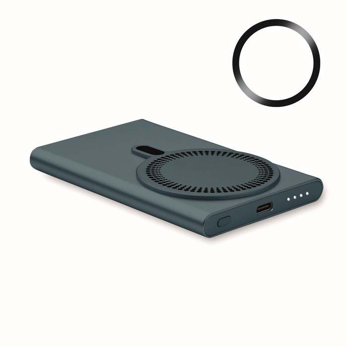 Mágneses vezeték nélküli töltő (15W) és powerbank külső akkumulátor (5000 mAh) újrahasznosított alumíniumból. DC 9V/1,66A teljesítmény. Támogatja a vezetékes gyorstöltési technológiát (20W). Be-/kimenet: C-típusú. Power Delivery (PD) támogatás a legújabb MacPro® laptopok töltéséhez. További mágneses fémgyűrűt tartalmaz, amely támogatja más, nem mágneses vezeték nélkül tölthető telefonok töltését.