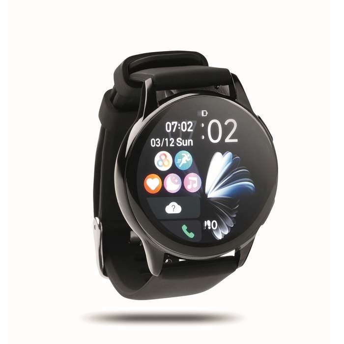 IP68 vízálló vezeték nélküli okosóra cink ötvözetből, szilikon szíjjal. 1.32 colos AMOLED érintőképernyő. Újratölthető 300 mAh lítium-polimer akkumulátor. iOS és Android rendszerre egyaránt ingyenesen elérhető alkalmazással (FitCloudPro) működik.