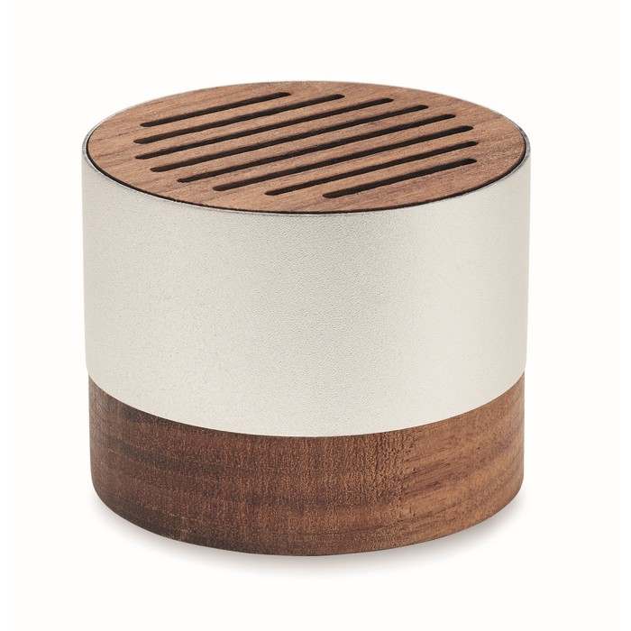 5.3 vezeték nélküli hangszóró újrahasznosított alumínium házban, a tetején és talpán diófa részletekkel. 1 újratölthető 300 mAh lítium-ionos akkumulátort tartalmaz. Teljesítmény: 3W, 3 Ohm és 5V. Üzemidő kb. 3 óra.