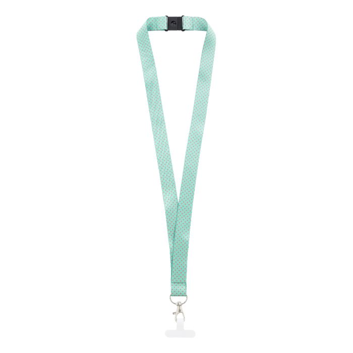 Egyedi gyártású, RPET mobiltartós nyakpánt fém karabinerrel, biztonsági csattal és telefonbetéttel, szakadásálló papírból. Mindkét oldalon szublimációs nyomtatott grafikával. Minimális rendelési mennyiség: 100 db.