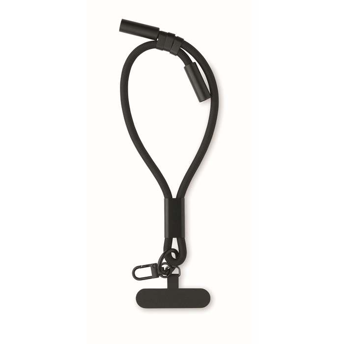 60W-os csuklópántos töltő- és adatkábel. C-típusból C-típusba csatlakozóval. RPET-ből, telefon- és kulcstartóval.