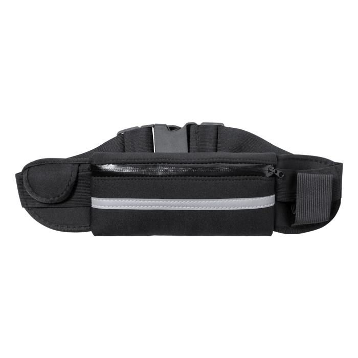 Softshell övtáska 1 cipzáras rekesszel, 1 kis zsebbel, rugalmas kulacstartóval, fényvisszaverő szalaggal és állítható pánttal.